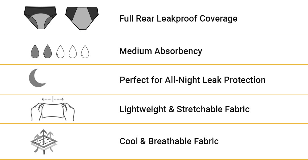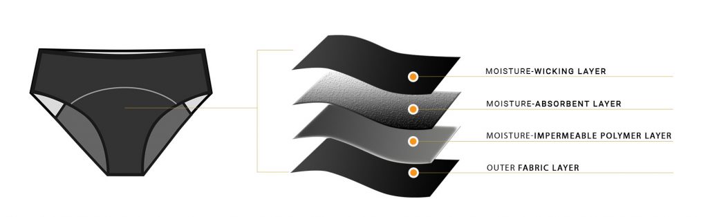 We offer a range of washable, reusable, absorbent, sustainably functional, period-proof apparel solution that can provide a leak-proof back-up to the traditional menstrual products, such as pads, tampons and menstrual cups during moderate to high flow days and can be used solo during the light flow days. Our need-driven apparel solutions are thoughtfully and expertly designed with great precision for a stain-free, stress-free and carefree period. The 4-layered Unique Design comprising of a Moisture-wicking layer, Moisture-absorbent layer and a Moisture-impermeable & Breathable polymer layer locks in and wicks moisture away from the skin, is naturally anti-bacterial, odor resistant, leak & stain resistant and is highly breathable. Period Panty High-Waist Style